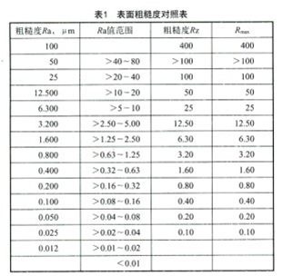 根據GB/T 1031-2009《產品幾何技術規范(GPS)表面結構輪廓法表面粗糙度參數及其數值》標準,關于粗糙度有幾個參數,其中在實際生產中作為產品評判用的主要有Ra、Rz和Rmax,根據表1所示的粗糙度對照表中各粗糙度參數的關系說明,Ra3.2 μm對應的Rz為12.5 μm。